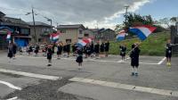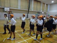 今日は、全学年でパレートの練習を行いました。4~6年生は鼓笛演奏、3年生はバナーとフラッグ2,1年生は掛け声を担当するのでううが、全員で行うのは初めてです。上級生の演奏は、これまでの練習が積み上がっており「いつでも来い」という印象です。3年生のフラッグ演舞もかなり板についてきましたし、1,2年生は初めての疲労で緊張気味でしたね。体育館の中を演奏しながら行進し、掛け声や歌声を響かせてくれました。「ガンバレ!ガンバレ!いいだ!」「おらっちゃの飯田町」とみんなを鼓舞する飯田っ子でした。一生懸命な表情と、高らかなメロディーとリズムを聞くと自然と笑顔になってきます。当日は、みんなの演奏や行進が町のみんなをさらに笑顔にしてくれることを楽しみにしています。