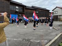 10月20日(日)今年の「いいフェス」は子ども達の活動を中心に、親子や地域のみんなで楽しもう!を目標に取り組みました。午前9時からの鼓笛パレードでは、4~6年生の鼓笛演奏、3年生のフラッグ演技、1,2年生の応援コールと、全校児童で飯田の町を回りました。3か所ある仮設住居前で「校歌・村祭り」を演奏し、途中の道路はコールで行進しました。たくさんの保護者や地域の人に見守られ、秋のあたたかな陽光の下、飯田っ子は頑張りました。見ている皆さんの顔も笑顔があふれていました。「飯田のみんなを元気にしたい」「僕たち私たちおみんなの力になりたい」という思いが伝わった演奏パレードでした。