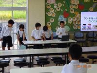 朝の集会で、給食委員から説明がありました。実際の盛り付けや配膳もしっかりとできていました。これから、全校で、おいしく、マナーにも気を付けて、感謝の気持ちをもって、給食をいただきましょう。