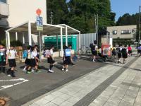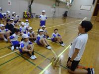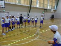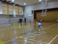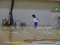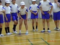 フラフープで跳んだり、バックで走ったり、いろいろ工夫してコースを作り上げ、汗を流して練習していました。見る見るうちに体のバランスがとれるようになり、上手に体を動かせるようになっていく2年生に拍手です。