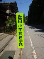 また、飯田町交通安全協会より 通学路の安全看板をつけていただきました。蛍光イエローでパッと目を引く看板です。ドライバーの皆さん、飯田小児童が登下校する道なので、スピードを落として安全運転をお願いします。
