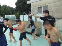 講演会の後は、ボクシング体験会とチャンピオンベルト鑑賞会でした。はじめは遠慮気味の飯田っ子でしたが、途中から我も我もと挑戦する人が増え、見ているみんなも自然と笑顔になって応援していましたね。