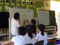 みんなそれぞれ自分の意見をもっていて、それを素直に口にしていました。安心して自分の意見を出せる関係があるのだなと思います。「好きなところ」で断然多かったのが「祭り」でした。単に楽しいではなく、「みんなでにぎやかにもりあがれるところがいい」と発表してくれる人がいました。そして、住み続けたいかどうかについては、「思わない」「迷っている」という意見ももちろんよかったのですが、「住み続けたい」という意見の人が多くいました。その理由は「だって友達がいるから」、「おばあちゃん達が集まっていることろへ行くと、『学校どうやった』と声を掛けてくれて、とてもやさしい人が多くて、そこがいいから」という意見もあって、児童のみんなはふるさとの良さを「人と人の関係」としてとらえているのだな、と教えられる思いがしました。真実を突いている気がします。