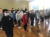 1月29日(月)学校再開3週目は、全校集会で校歌斉唱から始まりました。