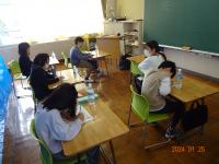 1月24日(水)、1年生はオンラインの友達も一緒にゲームを楽しみました。画面を通して、声を掛け合って笑顔が生まれていました。4年~6年生は、合同の理科の授業で、福井県恐竜博物館の研究員の方のお話を聞きました。ちょっと難しいところもありましたが、一所懸命お話を聞いて古代にロマンをはせていました。