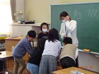 さて、今朝も集会から始まりました。校歌を高らかに歌い、支援のために兵庫県から来てくださっている「震災・学校支援チーム」の先生を紹介しました。先生からは、「素敵な校歌でした。みんなが元気でいられるように、がんばります」というお話をいただきました。先生には、登下校の同伴や授業の補助、教室の消毒などをしていただく予定です。