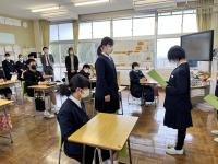 2月16日(月)今日は、緑丘中学校に、6年生が体験入学に出かけました。