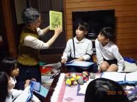10月23日(月)3年生は、総合的な学習の時間で、地域の方にインタビューしました。昔の飯田の町の暮らしはどうだったのかな、今とどんなところが違うのかな、小学生はどんな学校生活だったのかな、という質問をたくさんもって、学校評議員の坪野さんのお宅へ訪問させていただきました。坪野さんは、昔の本や地図、おもちゃを準備してくださり、昔の町の暮らしや、飯田小で過ごした思い出を語ってくださいました。途中、3年生からは「え~?」という驚きの声が何度もあがっていました。今と違うところ、でも気持ちは今の自分達と同じだったことなと、学びとっていたようです。飯田小「保護者・地域とつくるカリキュラム」が進んでいます。保護者や地域の皆さんとつながって、子ども達への願いやその方の生き方や価値観を伝えていただけるよい機会となっています。よい学びをさせていただきました。ありがとうございました。
