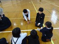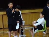 テーマは授業中の意見の聞き方でした。聞き方のレベルを4段階に分けて、演じてくれました。ただ聞くのではなく、頭を働かせて、自分の意見を考えながら聞くことできていますか、ということでした。集中してない聞き方や、物足りない反応について、皆で意見を発表し合いました。どんな聞き方や話し方がいいのか、わかったでしょうか。