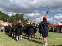 10月29日(日)飯田小鼓笛による、町内パレードとPTA主催のバザーと模擬店「いいフェス」が開催されました。昨年の創立150周年行事で復活した鼓笛パレードですが、2年目を迎え、商店街の中を通るコースに変更し、パレードすることとしました。沿道にはたくさんの人々が応援してくださいました。去年よりも近くから、直接声を掛けていただいたり、嬉しそうな表情で迎えてくださったりしてくださいました。今回の尾パレードで、児童達が目指した、「町の人に元気をあげられる演奏」が実現できたのではないでしょうか。