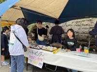 そして、旧保育所の園庭と飯田公民館を主会場に、「いいフェス」も行われました。PTAの皆さんのご協力で、大変楽しい・美味しい模擬店が勢ぞろいしました。子ども達はいつも以上ににこにこして、仲良く元気に過ごすことができました。公民館では、町民の皆さんに混ざって小学生の作品展示をさせていただきました。6年生のゲームコーナーも大賑わいでした。5年生の地域の特産品をアピールするために開発したおにぎりも大好評でした。家族や地域の方のお力添えで、大変楽しく有意義な「いいフェス」となりました。参加してくださった皆さん、ありがとうございました。飯田小のみんなも、皆さんの応援を背に受けて、毎日、成長する自分を目指していきましょう。