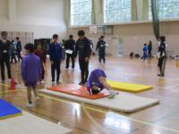 11月15日(水)市内小学校・義務教育学校4年生が集って技を競い合う「小学校器械運動交歓会」が飯田小学校でありました。飯田小の4年生は、やる気満々で臨みましたが、開始直前には「緊張する」と口にしていました。しかし、始まってしまえば、これまでの練習の成果を発揮し、大きな前転、開脚前転、後転の連続技を披露しました。飯田小の児童は、他校の上手な人の技に感心する声も上がっていましたね。その後の発展技の挑戦では、ロンダートや伸膝後転など難しい技を熱心に取り組んで、上達する人が何人もいました。自分の力をしっかりと発揮し、他校の同級生とも交流を深めることができた器械運動交歓会でした。4年生の成長を見ました。