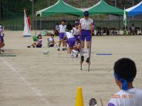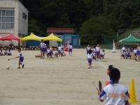 新しい競技「ここのっつリレー」では、各チームに保護者チームも参加し、みんなで9つの競技を楽しみました。リレーでは、首位が次々と入れ替わるという接戦になり、勝敗を超えて、みんなで運動会を盛り上げました。