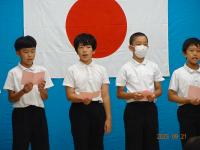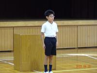 まず初めに各チームのリーダーから挨拶がありました。本番が一番のできでした、いつも協力してくれました、一日一日成長してくれました、というリーダーからのメッセージがあり、各グループで振り返りをしました。そして全体で発表。特に、自分の周りのともだちの良かったところは、次々と出てきました。「リーダーが休んだ人の分も、がんばろうと言ってくれてよかった」というのもありました。一年生から6年生に向けたありがとう、同級生同士で頑張っていた人を認める発言、どれもとても暖かいメッセージでした。そして、最後に5年生代表が登場し、頑張ってくれた6年生に向けて、下級生からお礼と拍手を送りました。大変すがすがしい会でしたね。今後も、友達の良いところを互いに認め合い、高め合える飯田小になっていきましょう。