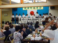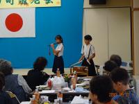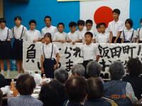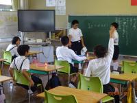 9月21日(木)5,6年生が、飯田町の敬老会に参加し、ステージで発表をしました。各学年の合唱、運動会でのダンス、そしてとろ山祭の祇園ばやしにのせて、きゃーらぎも披露しました。お年寄りの皆さんには、どの演目も喜んでいただきましたが、特に祇園ばやしがなり始め、曳山巡行のきゃーらぎがあがると、一段と盛り上がってください。「わあ、いいぞ」という声も聞こえてきました。そして、子ども達の「やっさー、やっさー」に合わせて、一緒に掛け声を掛けてくださいました。子ども達が引く綱の先には曳山ではなく、「負けとられん飯田町。いつまでもお元気で」というメッセージが現れました。お年寄りの皆さんからは「よかった」「グッドやった」「元気になったわいね」という感想をいただきました。5,6年生の皆さん、地域のお年寄りに元気を伝えることができましたね。また、登下校で会った時は、元気に挨拶を交わし合いましょう。
