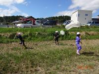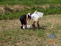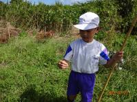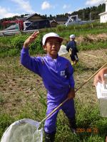 田んぼと川のグループに分かれ、秋に見られる生き物を採取しました。田んぼグループは、とんぼやバッタ、ちょうやコオロギ、カニなども捕獲しました。虫が大好きな3年生ですが、なかなか簡単には手に入りません。たもの使い方を教わり、何度か逃げられたりもしましたが、かなりたくさんの種類の生き物を捕まえることができました。春と秋、そして田んぼと川では生き物はどのように違うのでしょうか、そしてなぜ違うのでしょうか。そんなことも考えられるといいですね。頑張って追究してくださいね、3年生の皆さん。