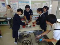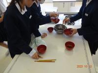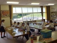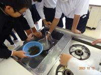 10月13日(金)6年生総合的な学習の時間で「住み続けられる町づくり」のテーマの下、探究学修を進めています。この日は、保護者でもある地域でお店を営んでいる方に講師をお願いして、珠洲の自然環境や食文化についてお話していただきました。奥能登は他の地域と比べてもたくさんの海藻がとれ、工夫して食べてきた歴史があります。天然のワカメが日本では大変貴重なこと、奥能登でとれる海藻の種類が豊富であることなどをお聞きし、実際に「うみぞうめん」を試食させてもらいました。灰でまぶした海藻を真水で洗い、お湯で戻し、手間をかけていただきました。もちもちしている、つるつるしている、初めての触感、と口々に感想を述べながら、珠洲の食文化を味わいました。豊かな珠洲の自然や文化をどのように、後世に繋いでいってくれるでしょうか。子ども達に期待です。