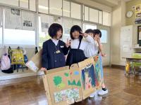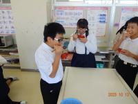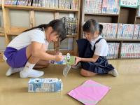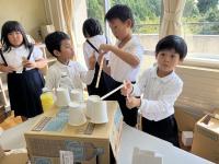 10月3日(火)2年生の学習で、おもちゃをつくって1年生を楽しませてくれました。動くおもちゃや射的を作って、一年生に遊び方を説明して、交流しました。作っている時は、1年生が楽しんでくれるかな、を考え、交流では、1年生が困らないように、楽しめるように、案内したり、誘ったりしていた2年生でした。最後に1年生から「楽しかったです」という感想を聞いて、嬉しそうな笑みを浮かべた2年生でした。頑張ってよかったですね。