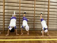 例年ダンスバトルの中に、低学年が中心となって魅せる「スタンツ」という体操技を取り入れています。柔軟性やバランス、そして筋力が必要なポーズを取ります。去年経験した2年生は、余裕綽々で、初めて体験する1年生もやる気満々でやってみました。運動会の練習は、9月に本格的に始まりますが、1、2年生のパワーと柔軟性と団結力で、盛り上げてほしいものです。