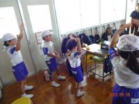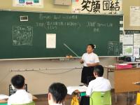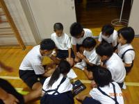 たて割り班に分かれて、グループごとの練習です。これまでに5、6年生が曲を選び、振付を考えてくれました。その振付を今日から下級生に教えました。自分たちで動画を作成したグループもありました。全校児童に配付されているタブレットを使って練習します。クラスルームに上がっている練習用動画を再生しながら、振付を教えています。楽しそうに飛び跳ねる1,2年生、自分達から積極的に練習を始める3,4年生、スロー再生で低学年のペースに合わせて教える上級生、熱中症を気遣う6年生、細かな部分もアドバイスする5年生。それぞれの一所懸命さや良さが表れた練習でした。