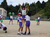 7月14日(金)9月に開催する運動会に向けて、1、2年生合同のスタンツ練習が初めてありました。