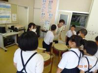 6月13日(木)6年生の音楽・総合的な学習の時間で、地域の方に、飯田の夏祭のお囃子について学びました、