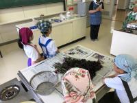 先日、飯田小学校の梅の里で収穫した梅干しを準備し、今日はシソの葉を揉み、塩漬けにしました。シソの葉を初めて見た児童も多く、こわごわ触っているようにも見えました、どうしてシソの葉で梅干しが赤くなるのかな、梅干しの種はちゃんと取れるのかな、と色々な疑問が出ました。梅干しづくりのベテランの先生方から、お答えのヒントを聞いて、考えながら作業をしていました。毎日一つずつ疑問を解決しながら成長している2年生です。