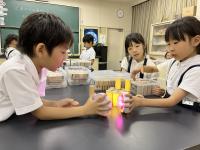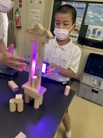 7月4日(火)奥能登芸術祭タイアップの授業がありました。アーティストの泰然先生と事務局の方をお迎えし、2年生の授業と、3、4年生の合同授業をお願いしました。あかりの効果を使って、積み木を反射させたり、遮ったりして、素敵な空間を作る活動です。みんな独創的な作品を作って楽しみました。明かりを灯すと、一段と魅力が増すことがわかりましたね。夏休みのワークショップや、奥能登芸術祭にもぜひ参加して、アートに親しんでみてほしいです。