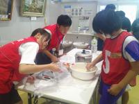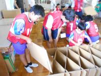続いて、防災クッキングとダンボールベッドの組み立てでした。協力しながら、グループで立派に取り組めました。