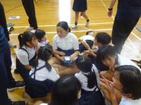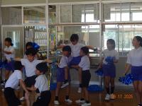 その後、小学部のお友達と一緒になり、ダンスやゲームを楽しみました。4年生達は、初めて会ったお友達にも、自分たちから声を掛けたり、物を準備して動きやすくしたり、静かに待ってあげたりと、一所懸命な姿がかっこいいな、と思いました。