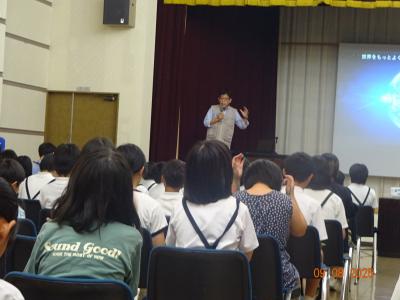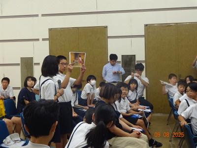 今日のお話しは、ファイダーさん(公益財団法人国際開発救援財団)でした。震災復興にあたり、毎日お弁当を支援してくださったり、珠洲市にバスをくださったりした団体です。そのことはしっかり学んでお礼をお伝えした子ども達でしたが、今回、初めてどのような活動をしていらっしゃるのかを聞き、びっくりしていました。