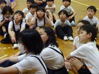その後、小学部のお友達と一緒になり、ダンスやゲームを楽しみました。4年生達は、初めて会ったお友達にも、自分たちから声を掛けたり、物を準備して動きやすくしたり、静かに待ってあげたりと、一所懸命な姿がかっこいいな、と思いました。
