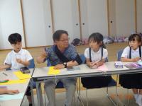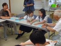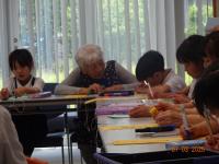 7月3日(木)今日は、1年生が公民館で飯田町のお年寄りの方と一緒に七夕のねがいごとを書きました。