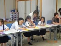 大きな声でご挨拶をして、みんなで一緒に願い事を一人ずつ書きました。途中、「きれいな字を書けるね」「一年生なのにそんな言葉を使えるの」と、たくさんほめていただいて、一年生はとてもうれしそうでした。