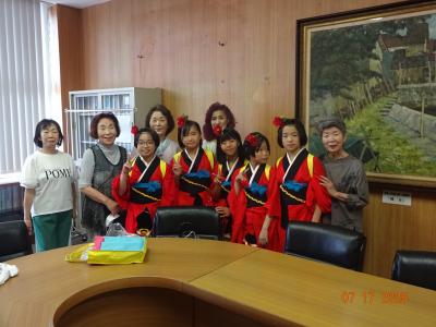 踊りの先生たちに着つけていただき、かわいらしい着物と法被姿になっての踊りでした。