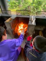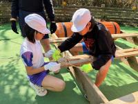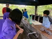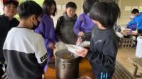 5月2日(金)宿泊体験は、最後の体験野外炊飯に挑戦しました。火をつけるのはおっかなびっくりの様子も見られましたが、協力しながらカレー作りに挑戦しました。