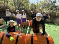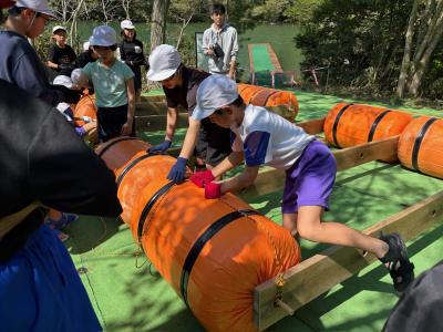 いかだを作って、池を周遊するそうです。無事にいかだが完成するのでしょうか。