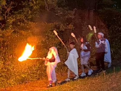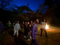 神が何を語ったのでしょうか?みんなの顔が炎に照らされ、穏やかな表情になっています。いつも仲が良いみんなですが、心の本音も語り合えそうですね。