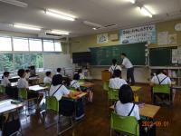 9月1日(木)長かった夏休みが終わり、一回り大きくなった児童が元気よく登校してきました。久しぶりに会う友達と仲良く遊んでにこにこしている姿があちこちで見られました。始業式はオンラインで行いました。続いて、担任から2学期の予定を聞いて、2学期のクラス目標や自分の目標を熱心に考えていました。