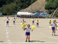 みんな、楽しそうです。全校で気持ちをあわせて何かを表現するのは、やっていても楽しいし、見ているものも楽しくなります。でも、まだまだ上達しそうですね。