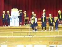 6年生に感謝を伝えて喜んでもらいたい、6年生にこれからの飯田小を安心して僕たちに任せてほしい、そんな思いで、どのクラスも大きな声で、みんなが一つになって、発表に取り組んでいました。担任の先生の檄も時折飛びますが、児童達はそれをてこにして、また一段と演技に熱が込もります。どの子もながいセリフを良く覚えたな、自分のキャラクターをよくここまで作り上げたな、と感心するレベルです。演じることの楽しさ、みんなで劇にメッセージを込めて表現する充実感が、みんなの姿から感じられます。この一年の成長の姿ですね。