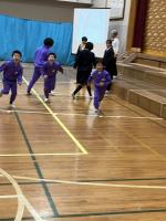 その後、小学部のお友達と一緒になり、ダンスやゲームを楽しみました。4年生達は、初めて会ったお友達にも、自分たちから声を掛けたり、物を準備して動きやすくしたり、静かに待ってあげたりと、一所懸命な姿がかっこいいな、と思いました。
