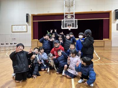 2月27日(木)午後、災害救助犬の活動を学びました。ピースウインズさんの計らいで、動物好きな1,2年生が現場での災害救助犬がどう人々を助けたのか、お話を聞いたり、実際に段ボールの町の中で体験してみました。賢くかわいらしい「ロジャー」号に、みんな夢中でした。