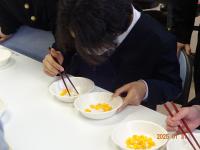 2月13日(木)今日は、おはし検定の最終日でした。食事のマナーの一つ、正しい箸の持ち方をマスターして、自分もおいしく、見ている人も気持ちよく食事ができることを目指して、取り組みました。
