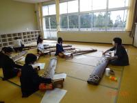 地震の際に、被害に遭われた家から10面ちかくのお箏を引っ張り出し、保管していらっしゃったお箏を、飯田小のお箏教室のために貸していただきました。4年生対象でしたが、もう一度弾きたいと希望した5年生と、2年前は地震でできなかったから是非したい、という希望した6年生と、総勢30人で習いました。