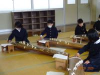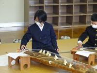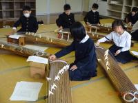 2月3日(月)4年生音楽では、町の先生濱塚婦基子先生をお迎えして、箏の演奏を習いました。