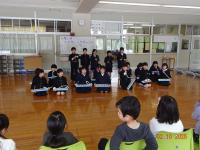 保育所から保護者と一緒に来校してくれました。おもてなしをするのは、1年生とお手伝いの2年生でした。会の司会の1年生も緊張しながらも、しっかりと務めました。合奏やダンスの披露もありましたし、クイズや遊びコーナーも楽しいものを考え、みんなで楽しみました。最後に、プレゼントのメダルと小物を渡してまた会いましょう、とお別れしました。年長さん達が4月に入学してくるのがとても楽しみになりました。