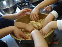 これから味噌を寝かします。上手に発酵が進み、みんなが4年生になった梅雨明け時に、おいしい味噌と再会できるといいですね。