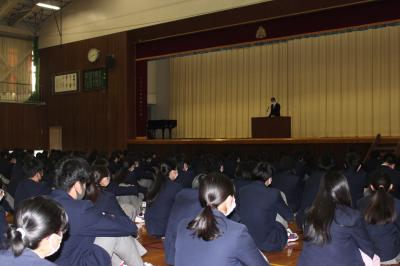 新型コロナによる休校以来初めて体育館で全校生徒が顔を合わせました。明日から冬休みとなりますが、冬休み中も健康に過ごし、全員で来年の始業式を迎えられることを願っています。