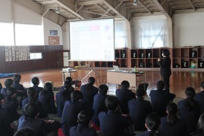 11月18日、2年生対象の【エイズ講演会】が七尾看護専門学校より講師の方をお招きして開かれました。